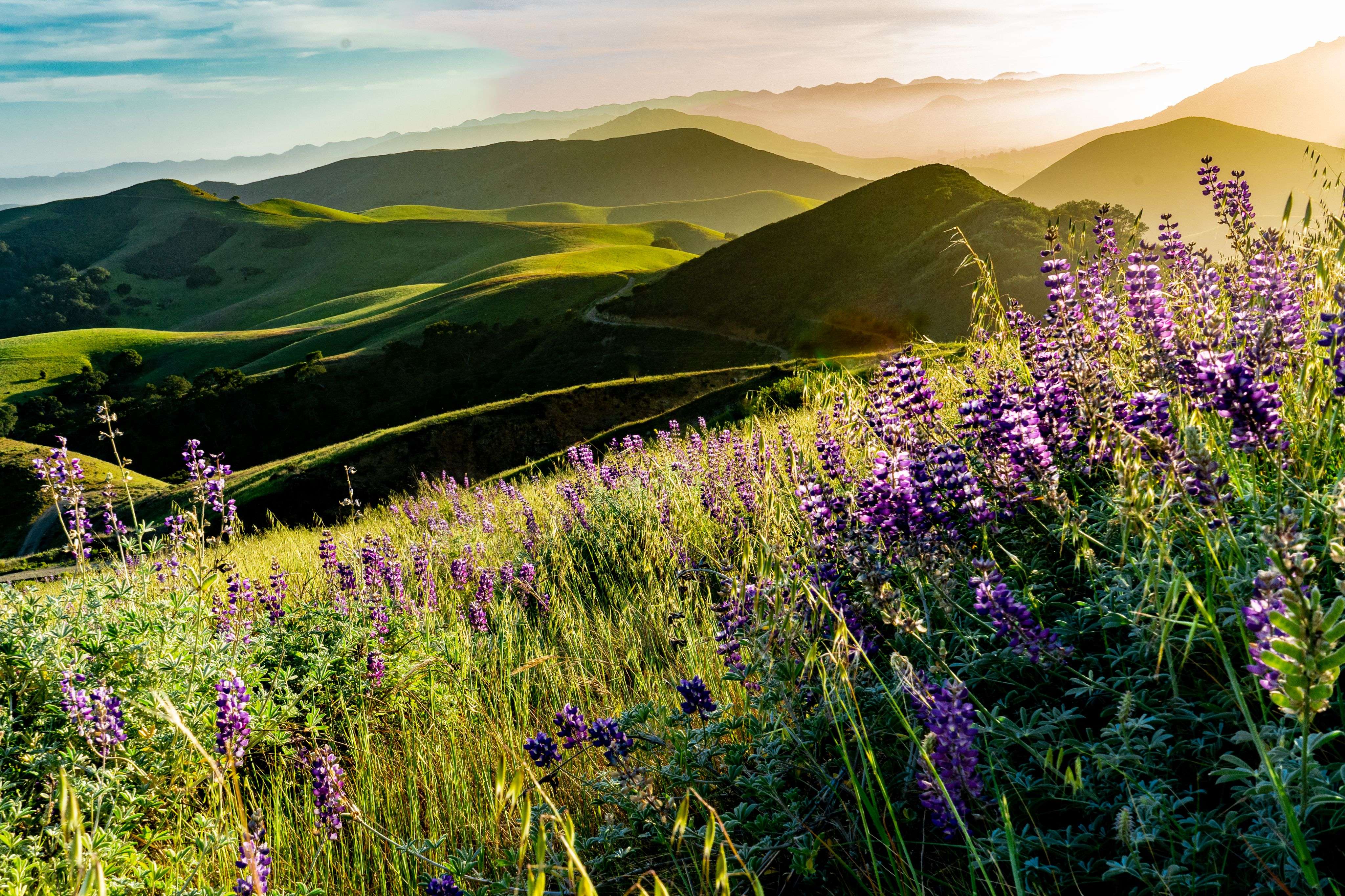 Lupins ar Sunset by Bill Rumbler