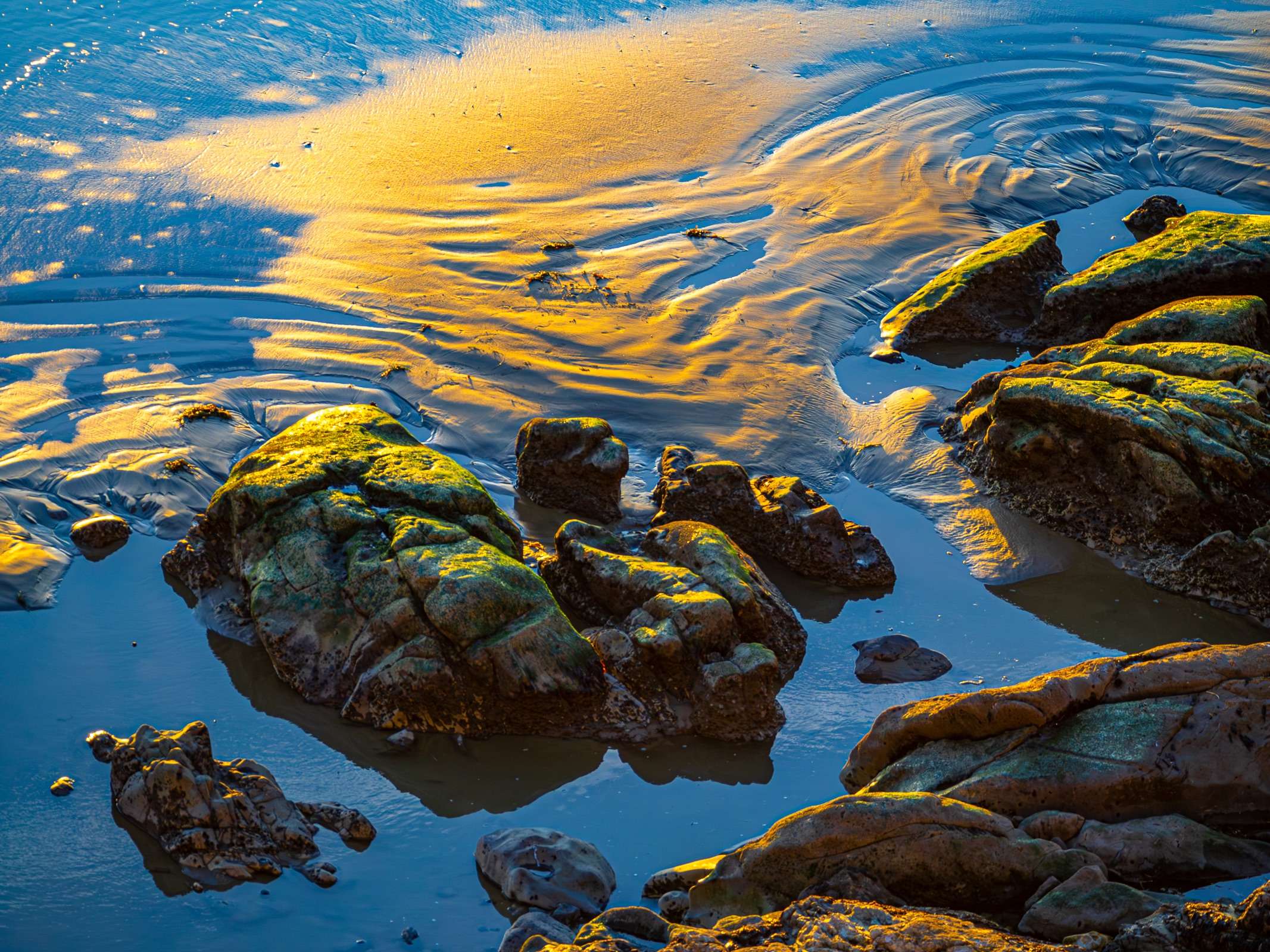 Golden Sand & Surf on the Rocks at Dusk by Kathleen Bosch