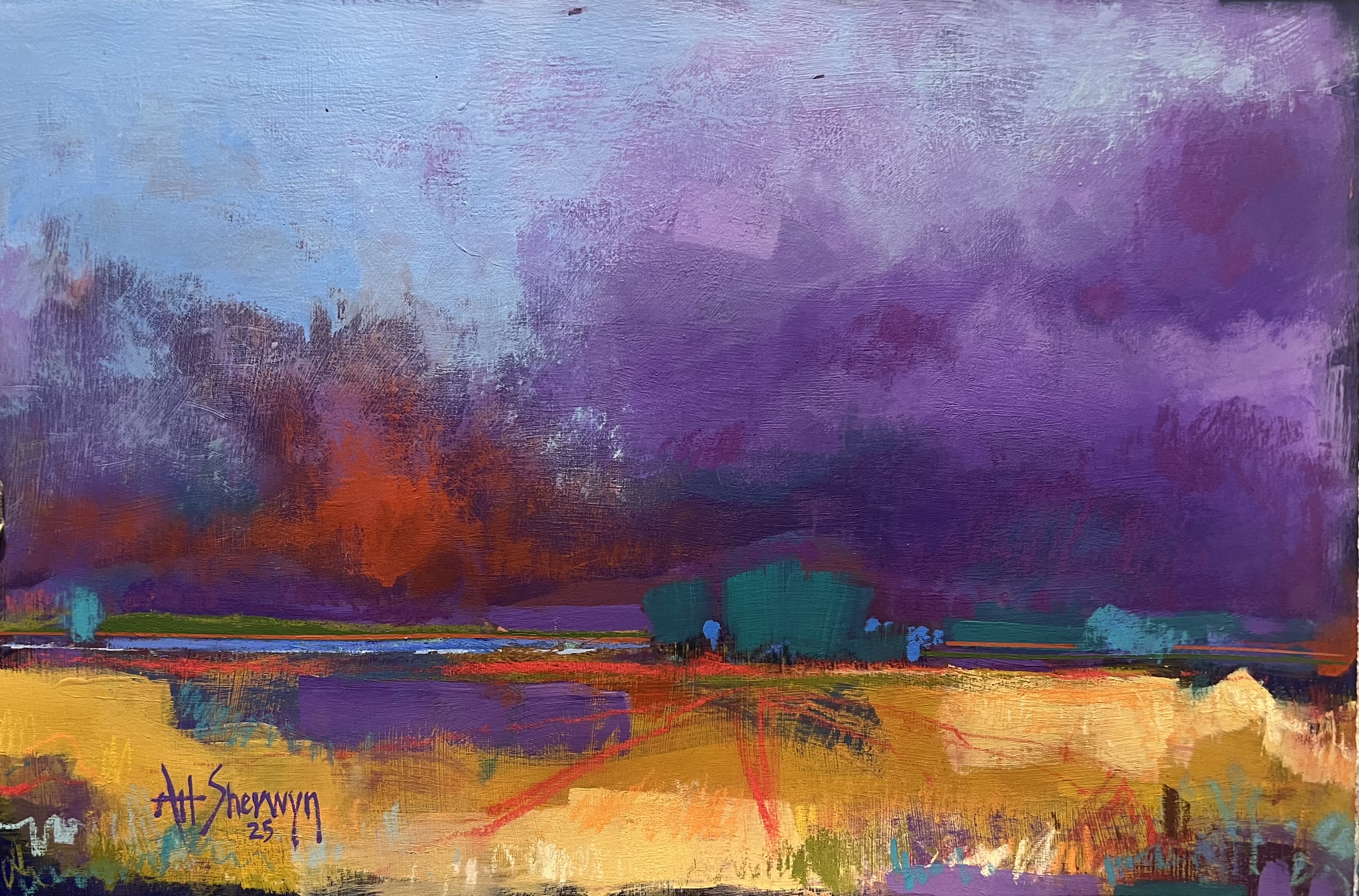 "Until Tomorrow" The painting continues around the edges of the canvas. There is no need to frame. by Margaret Biggs