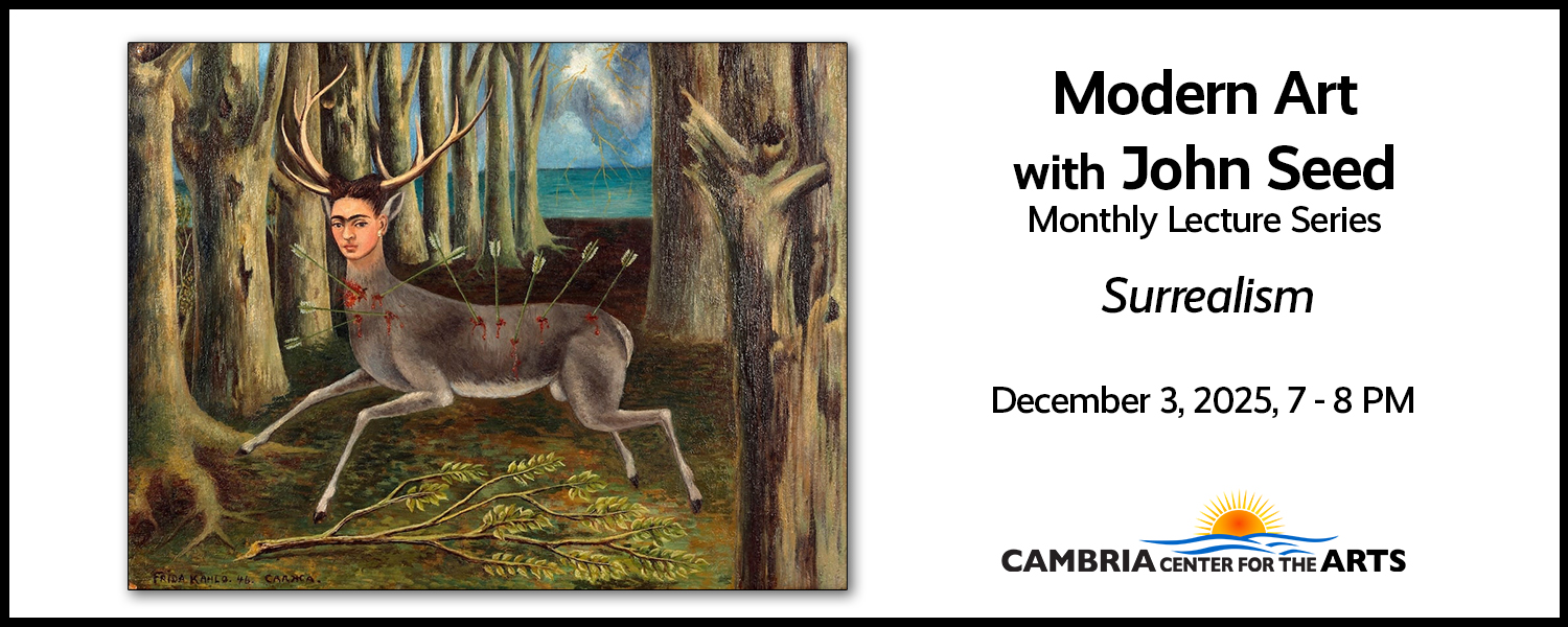 Sign up each month to join John Seed for a segment of a series of 14 lectures on the history of modern art and architecture. The lectures will run 45-50 minutes and will be followed by a short Q and A session. These lectures are based on college courses, but will be presented in an approachable way and are suitable for anyone with an interest in art. Topics: 1. What is Modernism? 2. The Mechanical Paradise and Paul Cezanne 3. Early Picasso 4. Picasso, Braque and Cubism 5. DaDa 6. Russian Modernism 7. The Landscape of Pleasure and Claude Monet 8. Henri Matisse 9. Modern Architecture 10. Surrealism 11. Expressionism and Edvard Munch 12. Abstract Expressionism and Jackson Pollock 13. Pop Art and Andy Warhol 14. Postmodernism