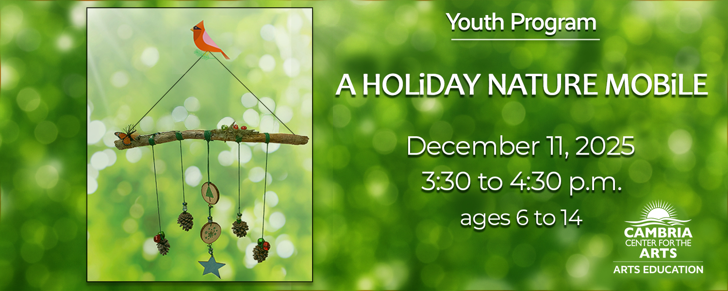 Join Greenspace - the Cambria Land Trust to create a Holiday Forest Mobile! Elements of the forest come together to create a festive ornament to hang inside or out! We will have pine cones, mushrooms, twigs, and lichen, as well as butterflies, tree cookies, bells, and stars, to create a one-of-a-kind masterpiece while learning about our Native Monterey Pine Forest.